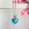 Silver Stainless Steel Transparent Blue Heart Necklace